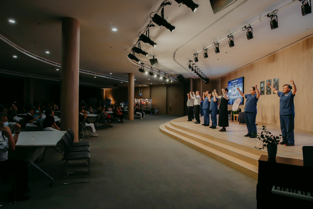 藉着手语表演,慈济志工与职员送上温暖与祝福。(摄/冯桂琼)