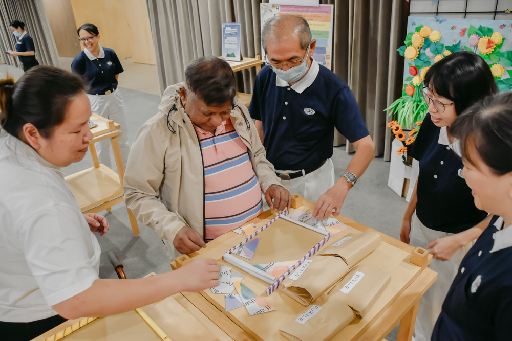 南区志工特别用色彩缤纷的花朵和灯光布置了打卡墙,照顾户留影后,还能把拍立得照片带回家作为纪念。志工张丽萍说道:“每一束光都象征一份希望,希望他们能像花朵般绽放,保持积极乐观的心态。”